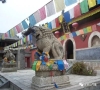天王殿殿前月臺上,置一對石獅,系唐代遺物。其基座為5層須彌座,長1.82米,寬0.95米,高1.04米,中間束腰浮雕飛龍團(tuán)云,上下兩層浮雕蓮花;石獅身長1.6米...